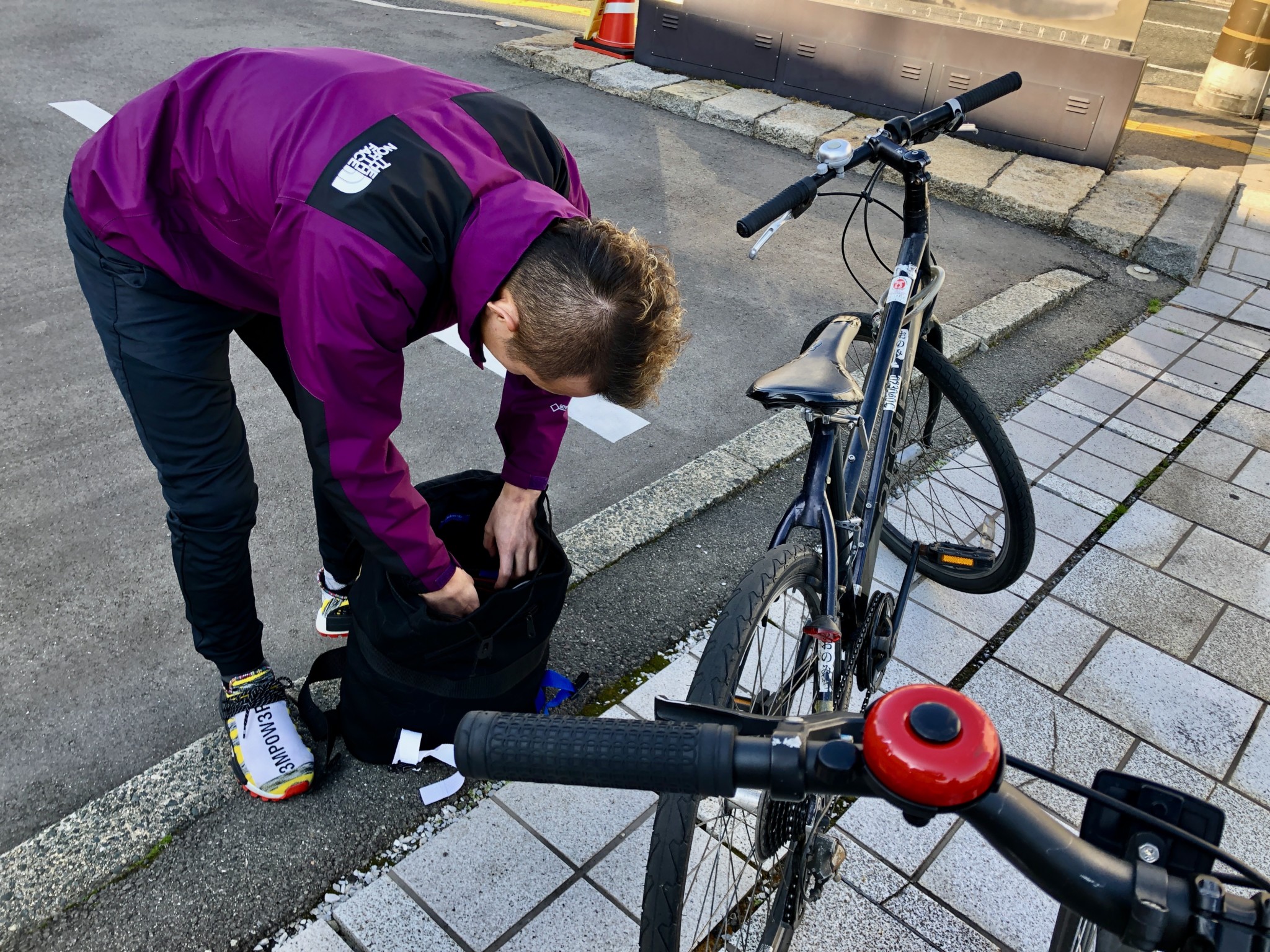 旅の最後には逆にママチャリ争奪戦に。