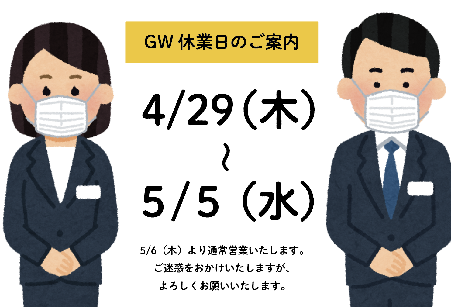 しっかり休んでGW明けからパワフルに営業いたします!💪🔥